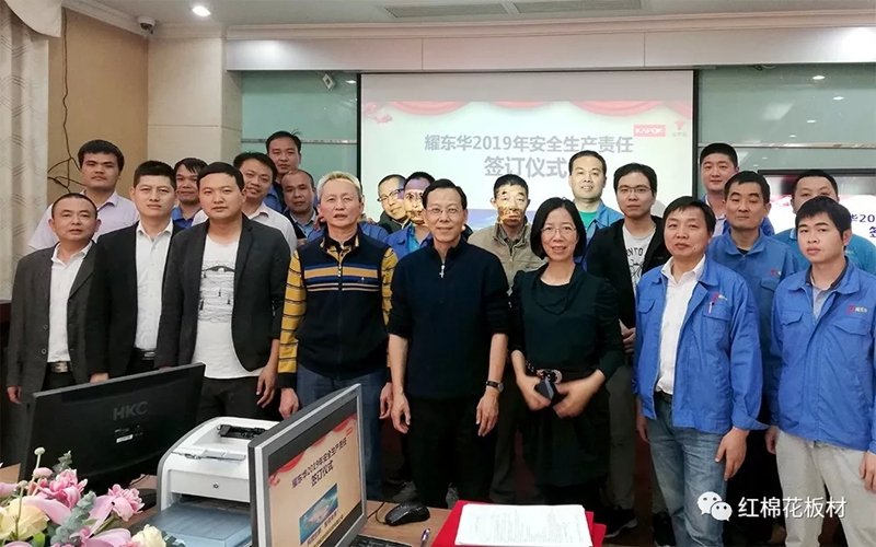 2019年3月16日,耀东华公司组织召开2019年安全生产责任目标签订会。耀东华公司总经理罗山鹰、副总经理兼制造中心总监邝越华、副总经理兼运营中心总监吴惠娟、运营中心副总监兼行政人资行政部经理丁健美及生产、物流、后勤等主管人员出席了签约仪式。