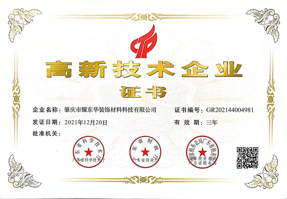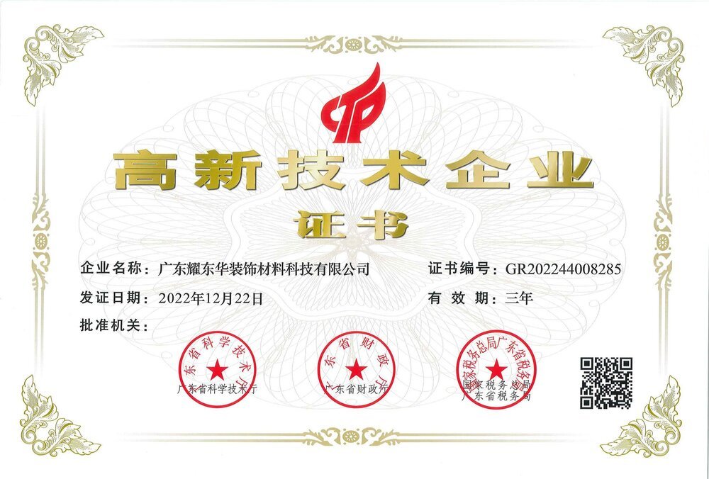 广东耀东华高新技术企业证书