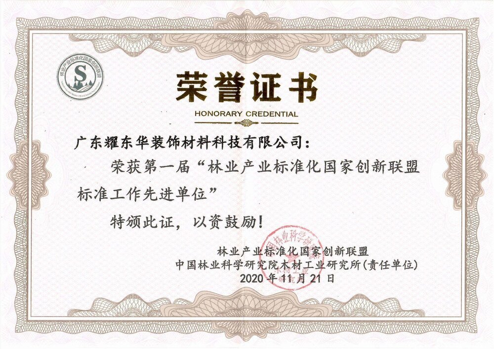标准工作先进单位证书