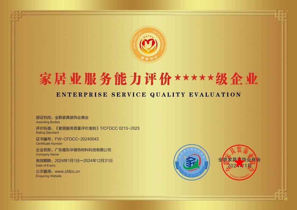 家居业服务能力评价5星级企业