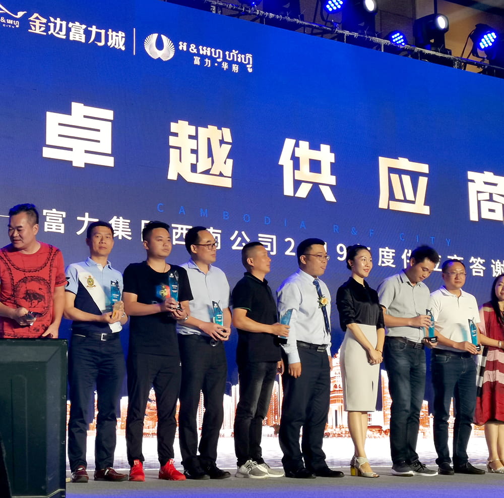 2019年6月21日,由广州富力集团主办的以“同心同力,遇柬未来”为主题的2019年度供应商答谢会在重庆举行,耀东华公司“红棉花板材”凭借其高质量的产品、优质的客户服务及强大的市场竞争力,从市场上众多品牌中脱颖而出,荣获“富力集团2019年度卓越供应商”称号!