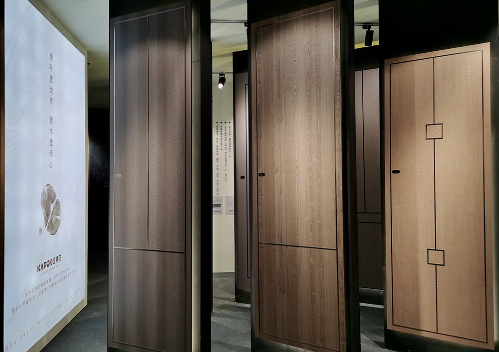 本次广州设计周展出了红棉花精准对纹20/21年新花色,魁北克枫木、波特兰胡桃、克里特橄榄木、温哥华枫影、卑诗影木、帕多瓦橡木、法国尼斯、科蒂纳胡桃……面对大众美学的提升,KAPOK用艺术为设计赋能,营造自然舒适的视觉和居住体验。