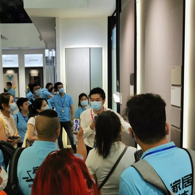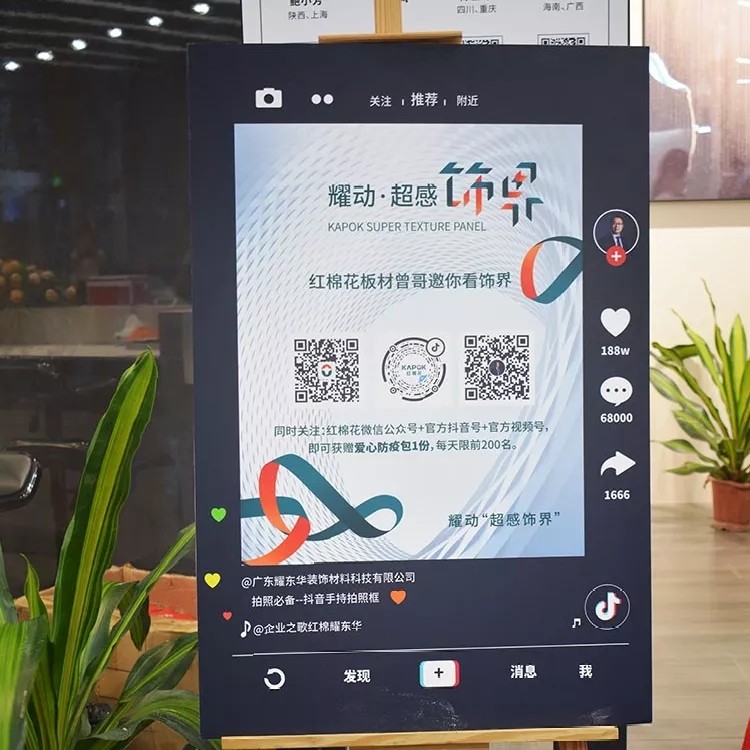 在上半年,我们开始在新媒体上持续发力,从抖音到视频号、快手,再到小红书,从配色方案到板材变态测试再到板材知识科普,我们不断向大众证明红棉花在板材行业的领军者地位。此次展会上红棉花首次推出“红棉花曾哥”形象,同时邀请众多抖音网红为红棉花拍摄带货短视频,“小曾哥”也在现场做起直播,带领网红们探展的同时还持续讲解红棉花的最新潮流趋势,使得网红们跃跃欲试,当场拍摄起视频素材。